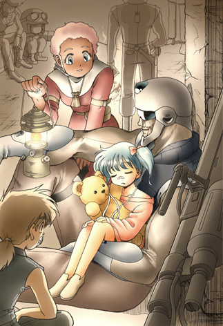 次の合作の話し合いの際に挙げられた、「子供達にプレゼントを配るノートン」という没案をもとに。これ描く為に地球章全話&設定資料を見ていたら ハードなノートンも描きたくなってきた…(笑)