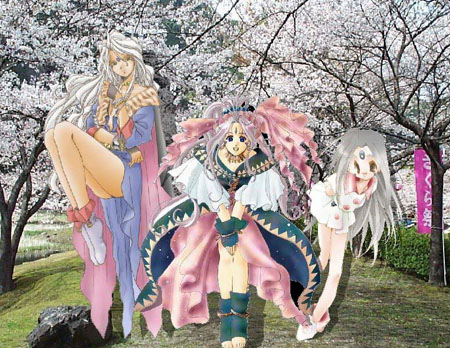 詐欺師のあしあとさん(ベルダンディー) ぷうさん(スクルド) レッドワイアさん(ばんぺいくん&背景&合成) 定原味子(ウルド) 個性の全く異なる4人での大合作。…でも、園ヤン繋がりでありながら何故か 『女神さま』(笑)。こういう背景もありだとわかっていたら、もうちょっと面白い構図ができたかなーなんて思ったり。ベルダンディーが小鳥と戯れてるとか、ウルドが大吟醸飲んでる…とか(笑)。 この合作のフルサイズはこちら 私のせいで、企画から完成まで15ヶ月かかりました。 ごめんなさい〜(汗) |