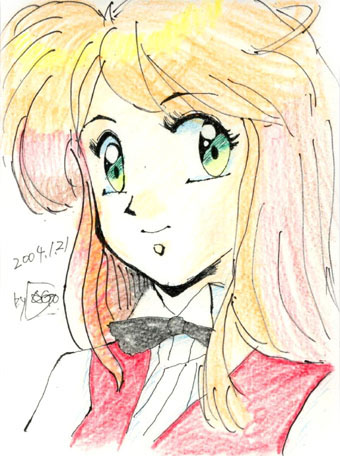「輪郭線にこだわってみました」(作者談)。オイオイ、本当にお絵描き未経験カヨー!…と再び叫んでみてもいいですか。技術的にはまだ不慣れな感じがしますが、特徴の掴み方や色の使い方等は、本当にお見事です。