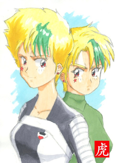| ルフィ&リフ・ラフ (ガルフォース&ガンスミス・キャッツ) 虎(初代)さんに「投稿、是非是非♪」と無理矢理頼み込んで描いて頂きました(笑)。「この2人のツーショットを見たことがなかったので、描いてみました」とのこと。絵的にはほとんど似たようなキャラクターなのに、髪型、目つき、眉、表情などが微妙に違う…。ここまできちんと描き分けられる人はそうはいません。今のところ、SADA LABOのみの公開だそうです。ルフィーは個人的に定原の大好きなキャラ! 水彩タッチのアナログでの着色も素晴らしいです。ありがとうございます! なお、虎(初代)さんのブログにアップされているルフィやその他のイラストも素敵ですので、興味のある方は是非ご覧になってみて下さい。URLはこちら |
